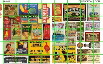 NH069 N SCALE HALF SETS – STEAM ERA ADVERTISING BULL DURHAM RED GOOSE, BUTTERFINGERS, SOAPINE AND MORE