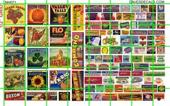 NH071 N SCALE HALF SETS – STEAM ERA ADVERTISING ASSORTED CRATE PRODUCE & FARM SIGNS